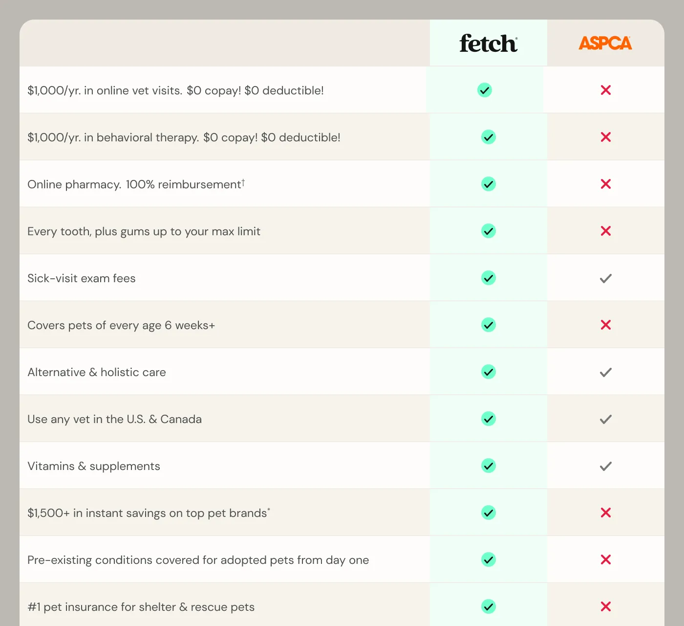 See how Fetch’s complete coverage comes out on top against ASPCA.