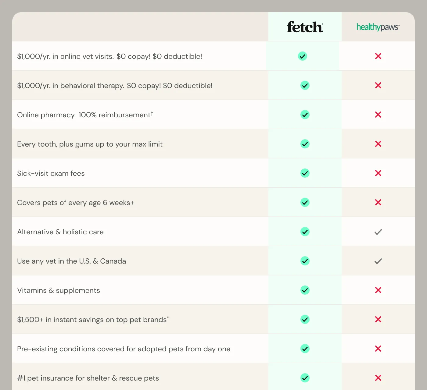 Fetch covers what Healthy Paws pet insurance doesn’t, including: