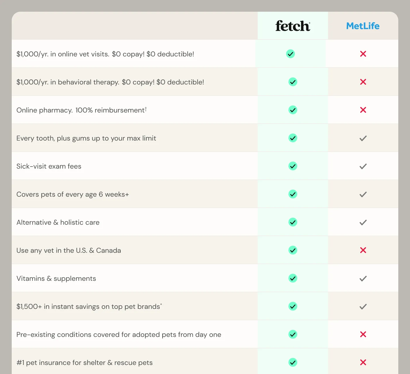 See how Fetch’s superior coverage is a better choice than MetLife.