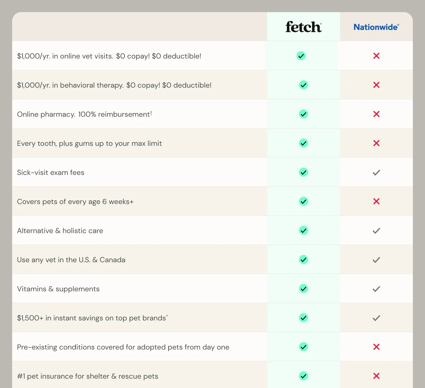 See how Fetch offers more coverage coast-to-coast than Nationwide.
